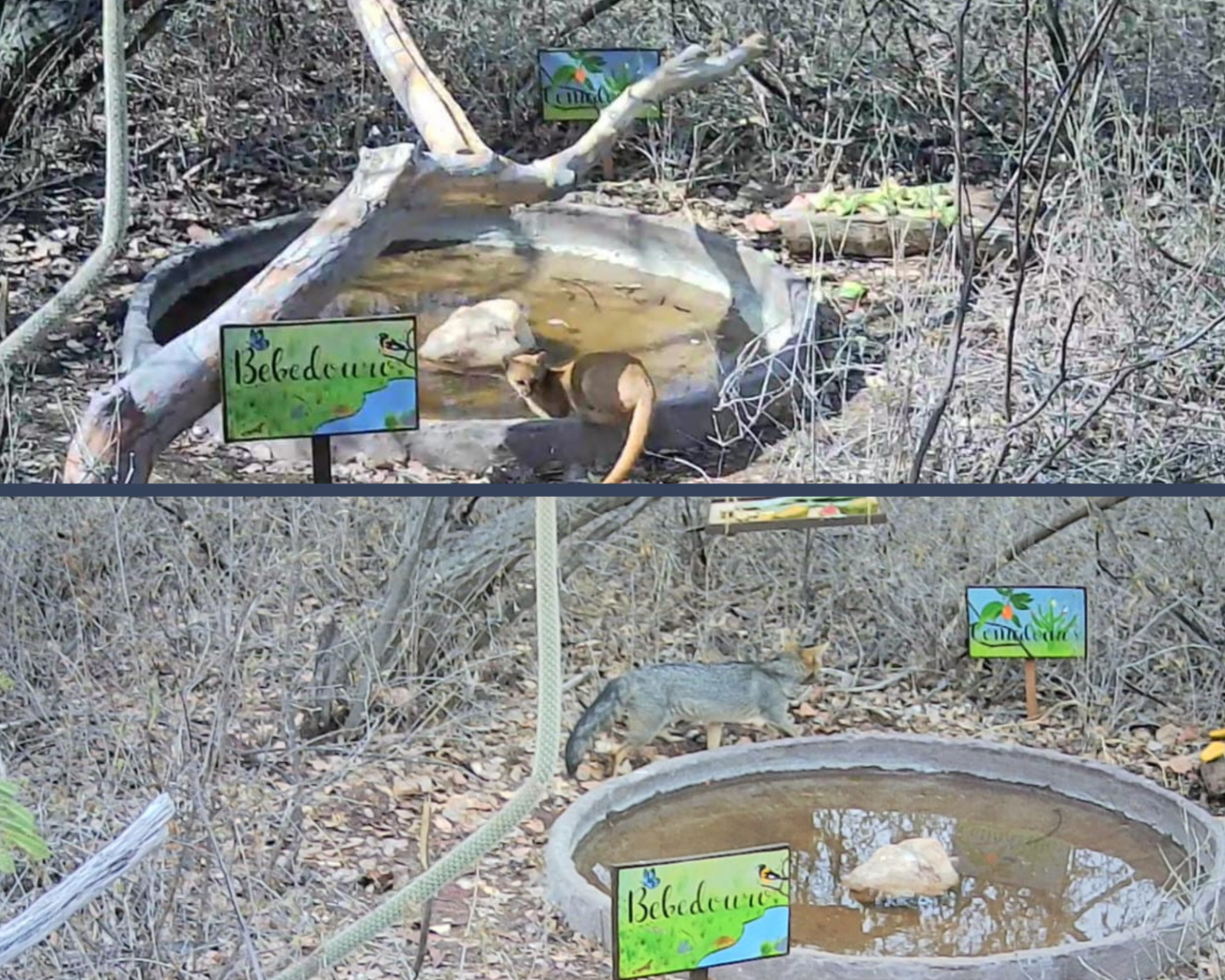 - Comedouro e bebedouro atraem animais nativos, como o gato-do-mato e raposa