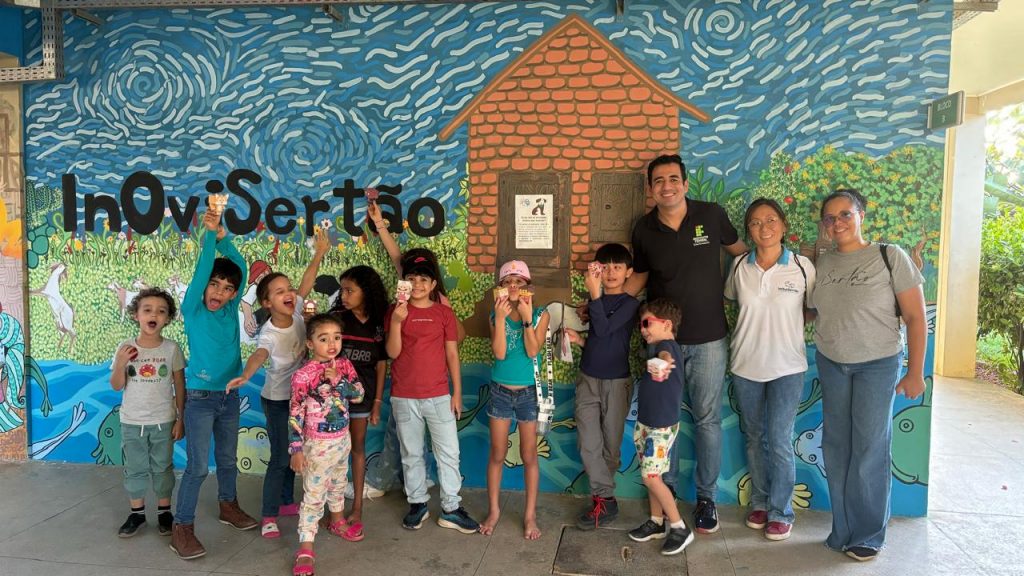 O campus Petrolina Zona Rural do IFSertãoPE recebeu, nesta terça-feira (30), visitantes bastante animados e muito curiosos para participar de uma programação especial. O primeiro dia do “IF de porteiras abertas Kids” reuniu cerca de 20 crianças, filhos e filhas de servidores da instituição, que tiveram a oportunidade de conhecer um pouco dos projetos desenvolvidos.