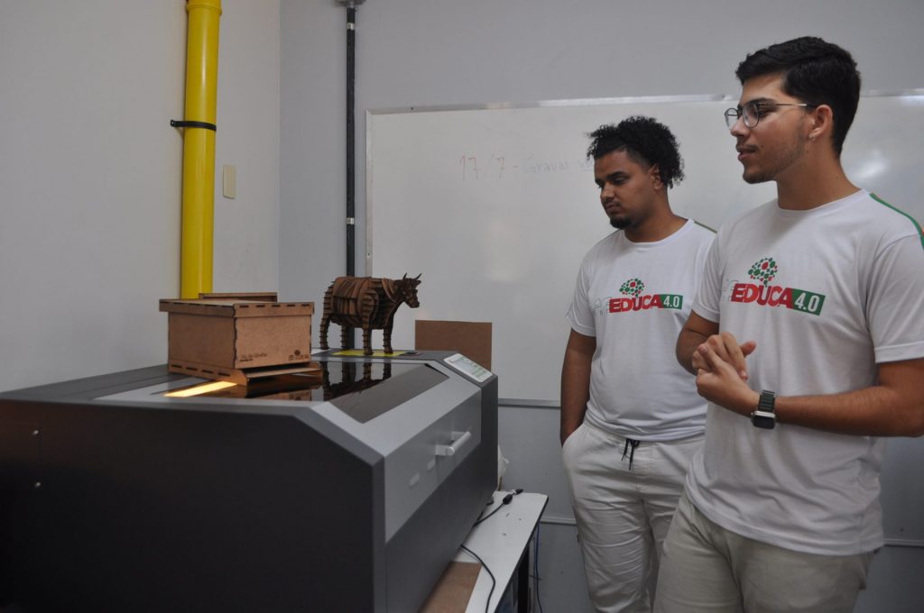 Os estudantes trabalham com prototipação em busca de otimização de processos. Entre as atividades, está a projeção e desenvolvimento de peças nas impressoras 3D e a laser. “Termina unindo tudo que a gente aprende. A gente produz tudo do zero. Vê um problema e busca a solução”, explicou Antônio Henrique.