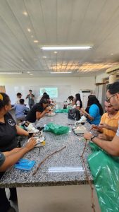 Três oficinas completaram a programação, abordando na prática questões sobre a caprinocultura, com a monitoria do zootecnista João Bandeira, sobre interpretação de análise de solos, com a equipe do Laboratório de Solos do campus, e sobre a análise de fertilidade de gemas, ministrada pelo estudante Francisco Dayvid da Silva e representantes do Geesp, Artur Cripriano e Mateus Agra.