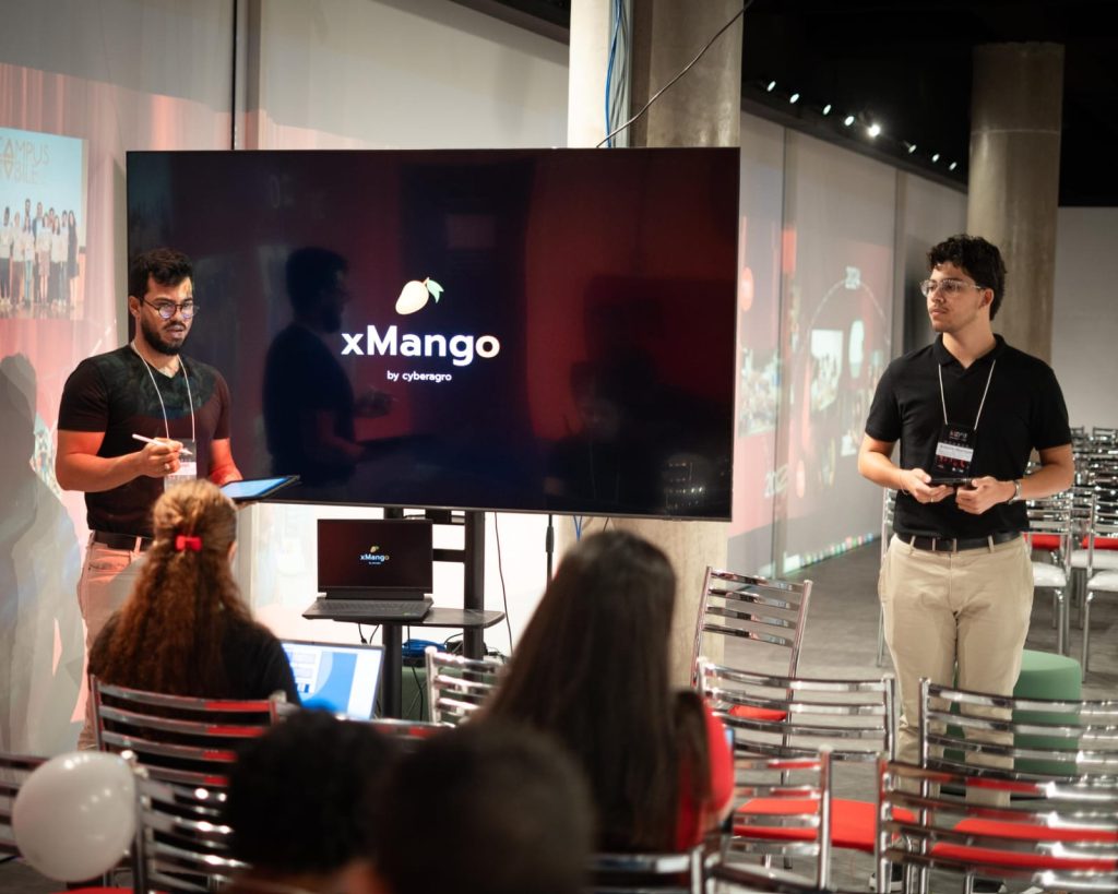 A CyberAgro apresentou uma solução voltada para a fruticultura, o XMango, um dispositivo inovador que tem como objetivo atuar no combate à mosca-das-frutas, na falta de mão de obra e na imprecisão da contagem de frutos. De acordo com Antônio Henrique, o XMango é uma solução que une inteligência artificial, visão computacional e automação agrícola. “O projeto visa criar um robô autônomo de patrulha agrícola capaz de coletar mangas caídas, monitorar pragas e gerar relatórios de produtividade em tempo real, conectados a uma plataforma SaaS com interface mobile, acessível via aplicativo. Já possuímos MVPs funcionais para identificação e contagem de frutos, além de uma armadilha inteligente para monitoramento da mosca-das-frutas”, explicou.