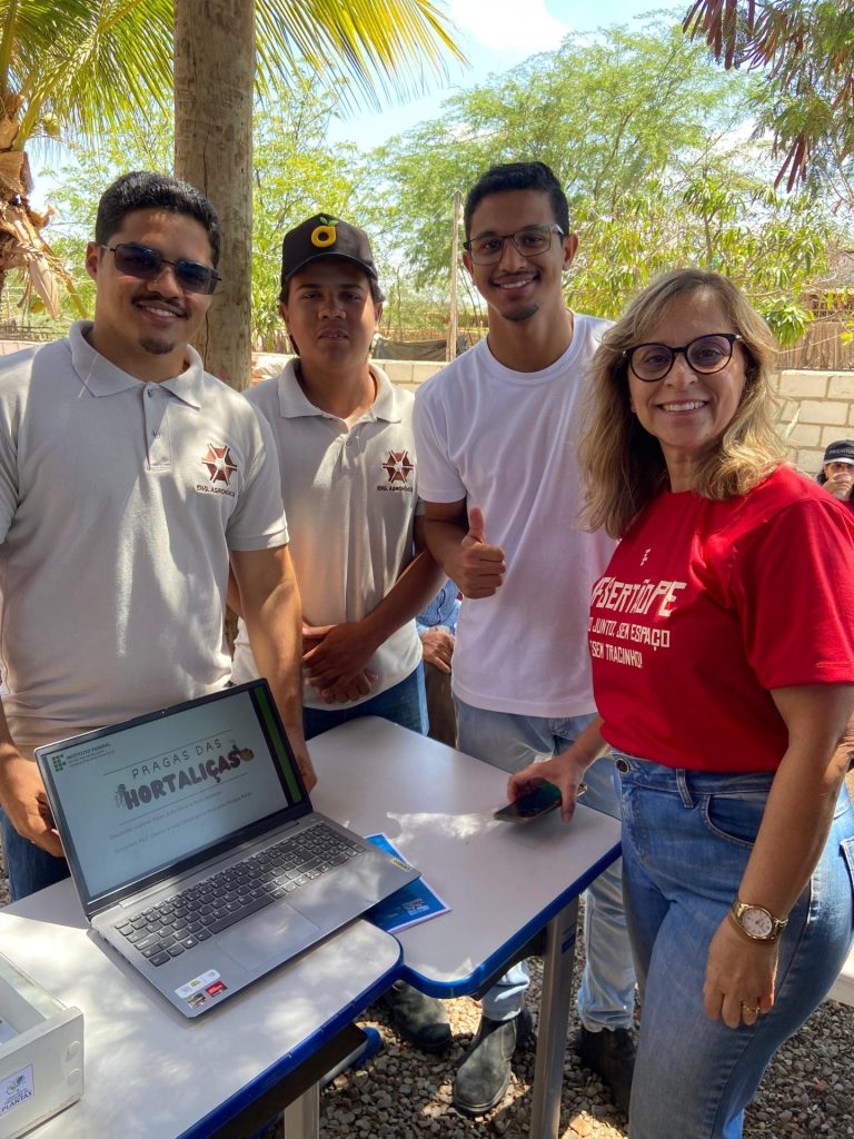 O campus Petrolina Zona Rural do IFSertãoPE promoveu, nesta quarta-feira (10), uma Mostra de Extensão Tecnológica voltada para agricultores do Acampamento José Arnaldo. A iniciativa é das disciplinas de Entomologia Geral e Fitopatologia Agrícola do curso de Agronomia, ministrada pelos professores Cleiton Domingos e Jane Perez.