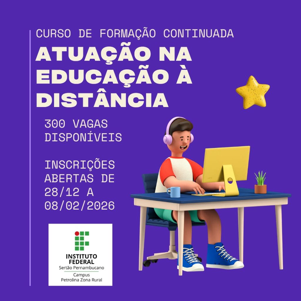 O campus Petrolina Zona Rural do Instituto Federal do Sertão Pernambucano (IFSertãoPE) divulgou, nesta sexta-feira (26), o Edital nº 32/2025, referente à seleção para o curso de Formação Continuada “Atuação na Educação à Distância”.