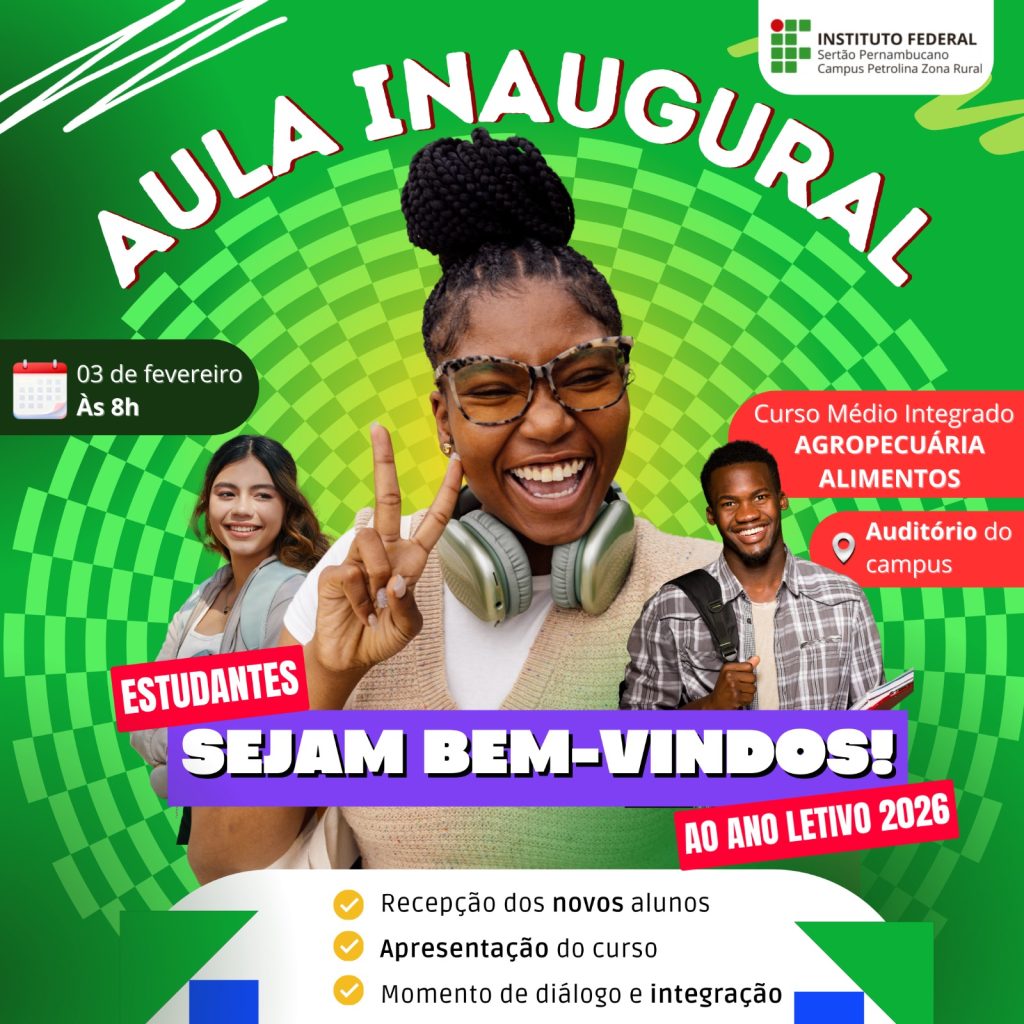 O campus Petrolina Zona Rural do IFSertãoPE inicia, na próxima terça-feira (3/2), o semestre letivo 2026, com uma programação especial de boas-vindas e acolhimento aos estudantes ingressantes nos cursos Técnicos Integrados ao Médio em Agropecuária e Alimentos.