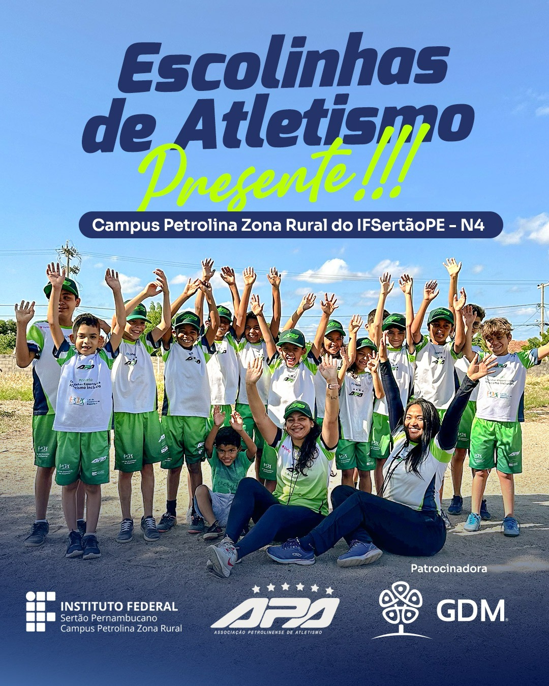 A Associação Petrolinense de Atletismo (APA) anunciou a implantação de uma nova unidade do projeto Escolinhas de Atletismo Inclusivo. O polo será no Campus Zona Rural do Instituto Federal do Sertão Pernambucano (IFSertãoPE), localizado no Núcleo 4 do Projeto de Irrigação Senador Nilo Coelho, em Petrolina.