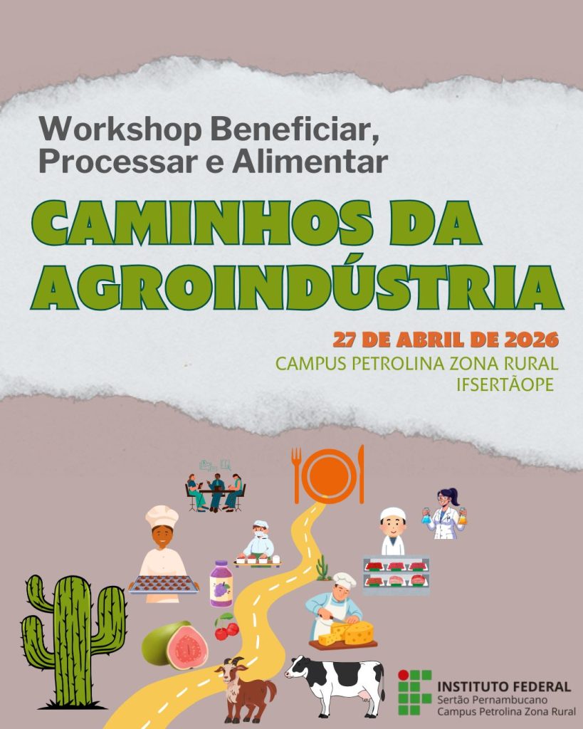 O campus Petrolina Zona Rural do IFSertãoPE realiza, no dia 27 de abril, o Workshop “Beneficiar, Processar e Alimentar: Caminhos da Agroindústria”. O evento tem como objetivo promover a atualização sobre a atuação na área de agroindústria, abordando temas relacionados ao beneficiamento e processamento de alimentos, bem como às normativas de fiscalização sanitária e ao mercado de trabalho.