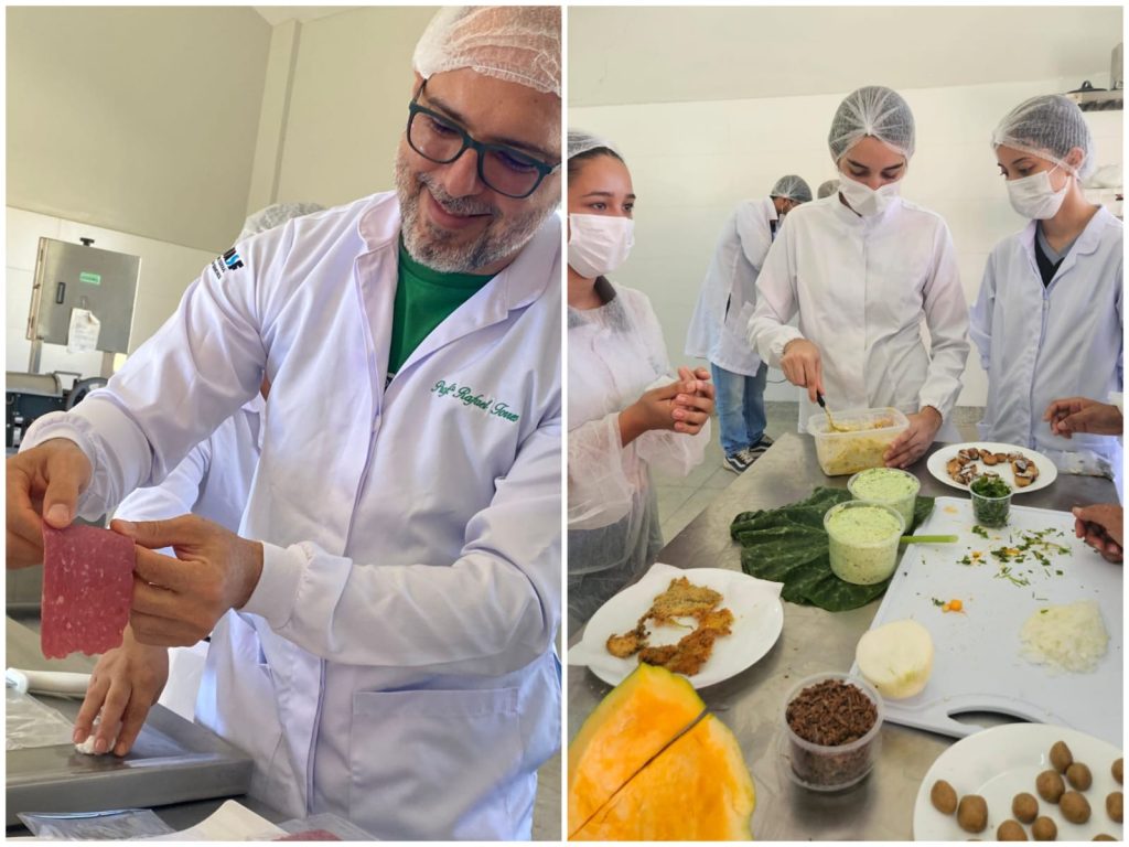 A tarde foi dedicada à prática: foram ofertados minicursos em que os participantes colocaram a mão na massa trabalhando com geladinho gourmet, aproveitamento integral da abóbora, produção de queijos especiais e elaboração de apresuntado ovino, além de aprender sobre boas práticas na manipulação de alimentos.