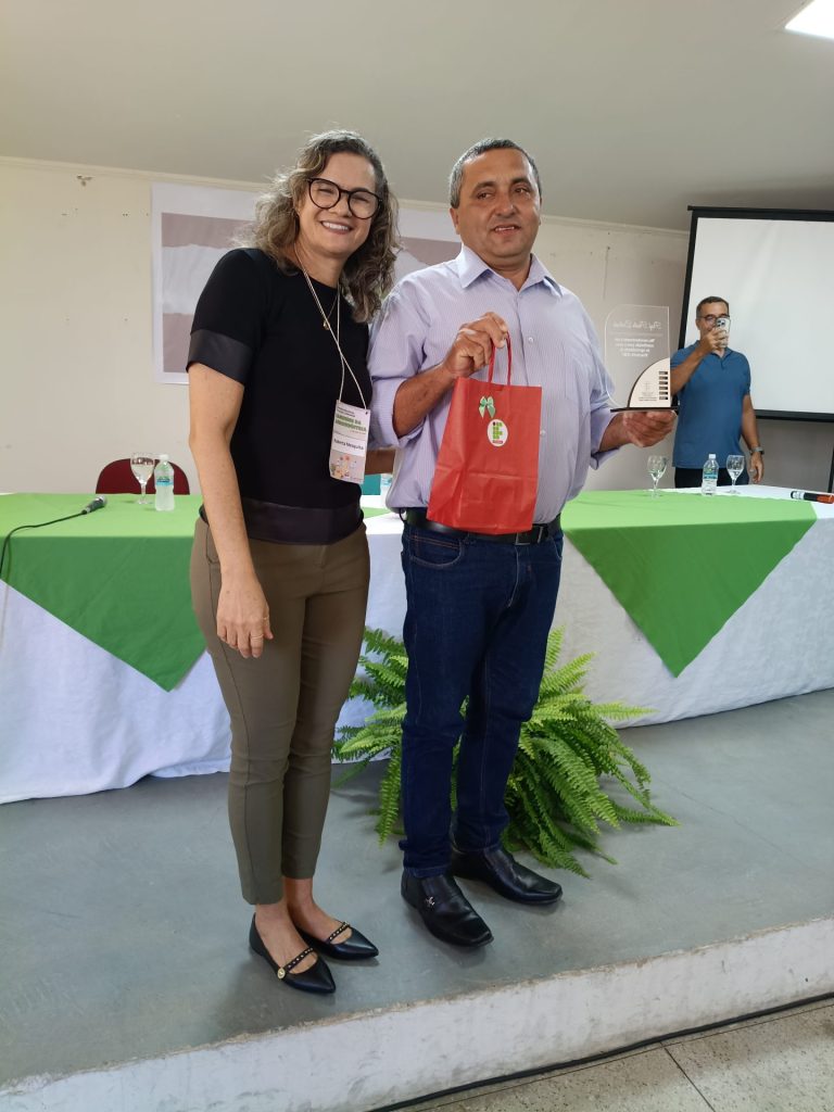A professora Roberta Verônica Mesquita fez a homenagem ao colaborador Rodrigo Nunes, egresso da primeira turma de Agroindústria e atuante no setor como profissional desde o ano 2000. Roberta ressaltou a importância de Rodrigo nas atividades de ensino, pesquisa e extensão, desenvolvidas no setor, e de seu trabalho, realizado sempre com responsabilidade. “Hoje celebramos não apenas o profissional competente que você é, mas uma história de pertencimento, de raízes, de fidelidade a esse lugar”, celebrou Roberta.