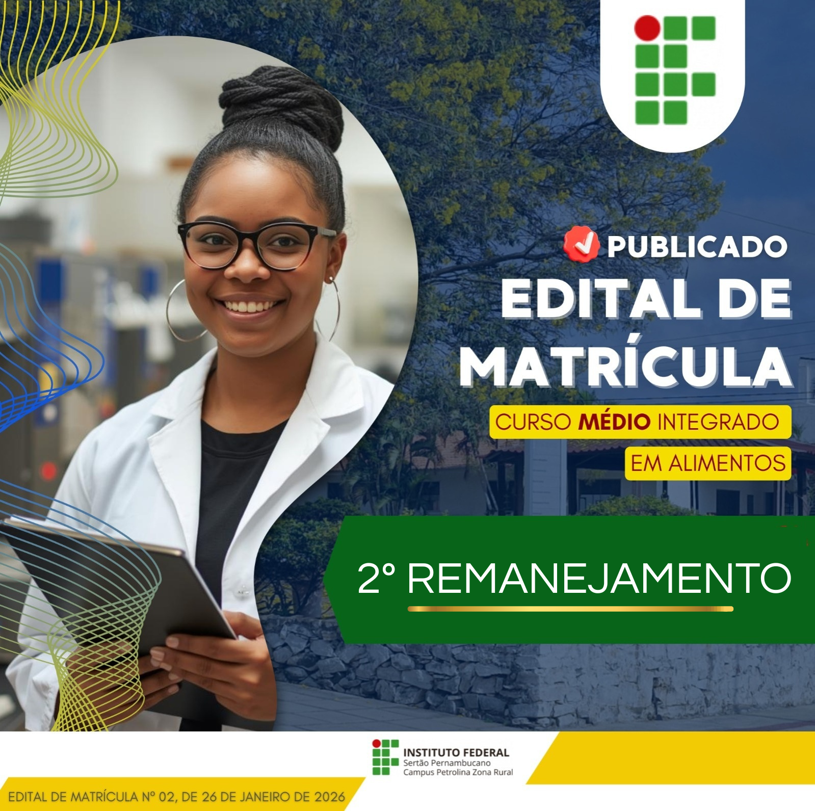 O campus Petrolina Zona Rural do IFSertãoPE está com inscrições abertas para seleção para ingresso na Residência Estudantil. Podem participar estudantes regularmente matriculados nos cursos do Ensino Médio Integrado em Agropecuária e Alimentos, Subsequente em Agricultura, Agroindústria e Zootecnia e Superior em Agronomia e Viticultura e Enologia do campus, prioritariamente em situação de vulnerabilidade socioeconômica. As inscrições serão realizadas entre os dias…
